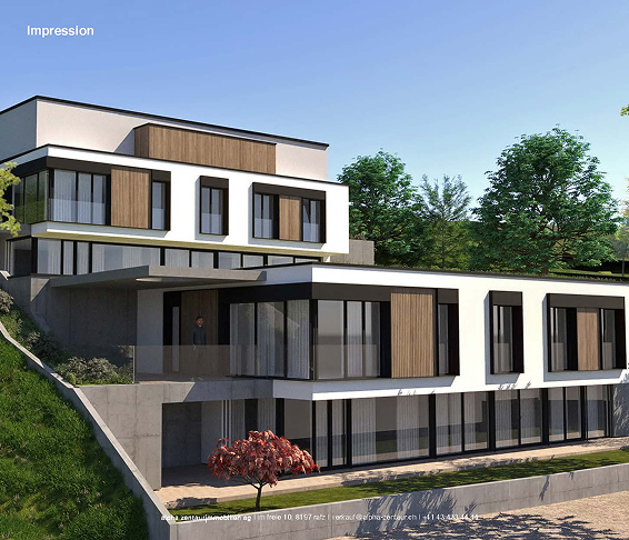 • Komplett verglaste Fassaden mit direktem Gartenzugang